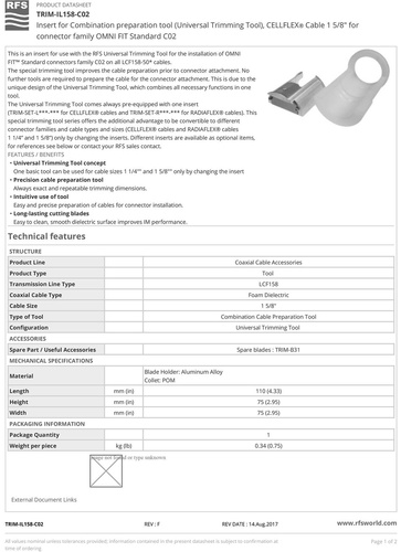Wkład wymienny do zarabiarki UTT do kabla LCF158 (złącza C02)