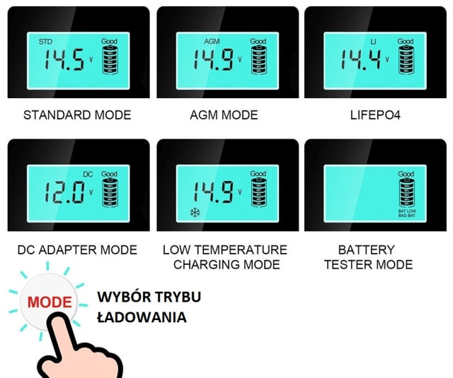 AGM MODE - tryb ładowania baterii AGM, kwasowych.