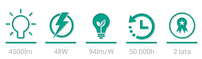 Lampy mogą zostać wykorzystane do oświetlania zarówno dróg, parkingów, osiedli czy parków, jak i obszarów przemysłowych, placów itp. Wysoki stopień ochrony zgodnie z klasą IP65 zapewnia wodoszczelność, ochronę przed pyłem i kurzem, a także odporność na niekorzystne warunki atmosferyczne. Standardowa temperatura barwowa lampy to biała dzienna 4000K-5000K, jednak dostępne są także dwa dodatkowe warianty na zamówienie - biała ciepła 3000-3500K oraz biała zimna 5500-6000K. Wszystkie parametry techniczne naszych lamp odzwierciedlają realne wartości.