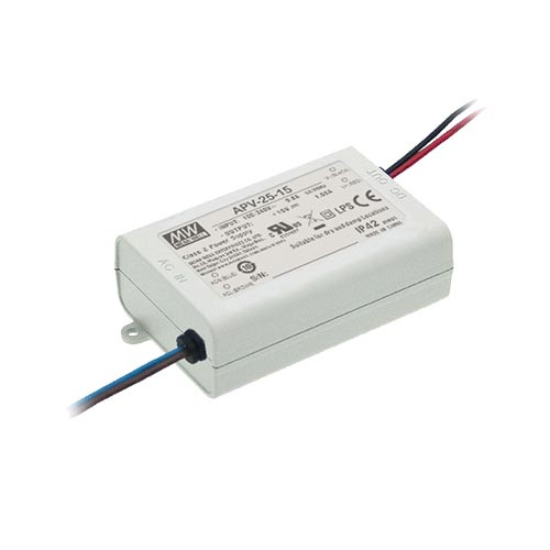 Zasilacze impulsowe serii APV marki Mean Well to urządzenia w plastikowej obudowie ze stopniem ochrony IP30.