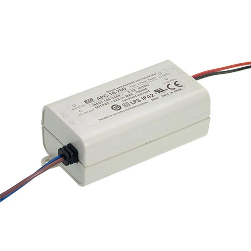 Zasilacze stałoprądowe serii APC marki Mean Well to urządzenia o małym gabarycie w plastikowej obudowie ze stopniem ochrony IP30.